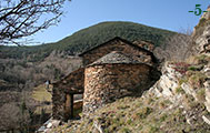 Que nos encontramos ante una construcción muy temprana lo atestigua la ausencia de decoraciones lombardas. Lo que, sin lugar a dudas, llamará nuestra atención es la colocación de la ventana del ábside. En un ábside semicircular (foto 7), lo normal es encontrarla en el eje longitudinal de la nave, pero en este caso se encuentra desplazada hacia el muro sur, con el que casi linda (enlace 2). Su tipología recuerda a otras iglesias rurales del país y, en concreto, a Sant Serni de Nagol, también visitada en esta ruta. Comparte con aquella la espadaña de dos vanos en el hastial occidental, aquí, con todo, mucho más esbelta. |
