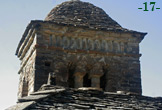 Pasemos al lado norte de la torre, de la que gran parte queda oculta por la nave de la iglesia (fotos 16 a 20). Aparte de las rosetas, ocultas para el observador, podemos comprobar que por encima de ellas se abre la ventana de tres vanos, sobre la que corre el friso de baquetones verticales.