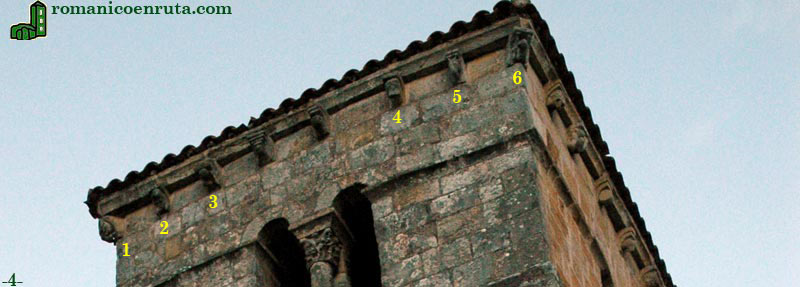 En el lado norte del transepto (foto 5) se repiten los motivos decorativos de los canecillos, con alguna variación: