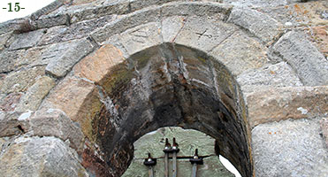 En los arcos de las troneras mayores, algunas de las dovelas (foto 14) llevan marcas de cantero (una de ellas, a la derecha de la imagen, unas tenazas).