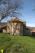 Continuaremos por la carretera hasta Castrillo de Valdelomar. Ubicada en un peñasco y formando parte del paisaje distinguimos la iglesia de Santa Leocadia (foto 4). Mantiene la estructura románica de principios del siglo XIII y una torre prismática que sustituyó a la espadaña exenta. El ábside es semicircular y presenta una ventana con capiteles; el izquierdo es iconográfico y el derecho con hojas verticales. La portada es apuntada y sus columnas muestran capiteles con hojas de vid. En el exterior se aprecian sepulturas antropomorfas excavadas en la roca. |