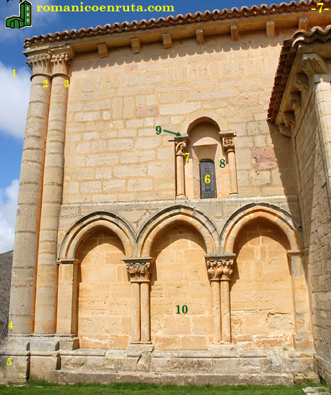 Accederemos al templo por su fachada norte (fotos 1/2). Tanto esta como el hastial occidental (foto 3) carecen de decoración escultórica reseñable, hecho que contrasta con la abundante obra que adorna el muro meridional (foto 5/6). Según Luciano Huidobro (quien estudió la iglesia a principios del XX) había una puerta en el muro norte, pero no quedan restos.