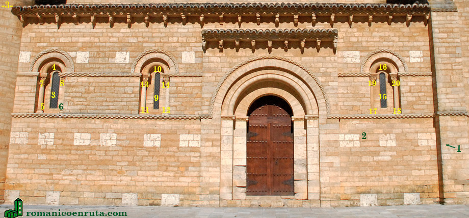 La escasa iluminación del interior se obtiene por medio de las ventanas de la cabecera, descritas en el enlace de "cabecera", y por las de las naves laterales, tres en cada una de ellas. Todas son iguales: rosca exterior con chambrana de billetes y arquivolta de grueso baquetón sobre capiteles de variada ornamentación. A la altura de los cimacios de los capiteles y por debajo de las basas de las columnas, dos impostas abilletadas recorren el muro de extremo a extremo.
