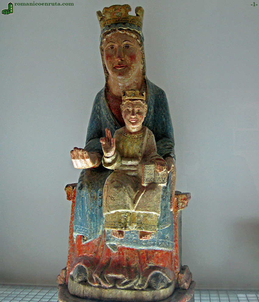 La talla de la Virgen mide 75'5 cm de altura y la del Niño 33 cm. Se nos representa a la madre como "sedes sapientiae" o trono de la sabiduría, formato que empezó a ser utilizado en el siglo XII y que perduró hasta bien entrada la siguiente centuria. Es un claro ejemplo de la transición hacia parámetros más naturalistas alejados de la tradición bizantina en la que el Niño se coloca en posición central delante de la madre. Aquí, el Niño se mueve un poco hacia la izquierda de la Virgen que avanza su brazo izquierdo en señal de protección (enlace 6). La Virgen viste túnica de color rojo (enlaces 1/2) y manto de color azul-verdoso, mientras que el manto y la túnica que viste el Niño son de color amarillo (enlace 4). El Niño sostiene en su mano izquierda el Libro de los Evangelios y la madre abre su mano derecha en la que, muy probablemente, debió de figurar la bola del mundo, hoy perdida. Por su naturalismo y la mayor complicidad entre los personajes implicados, esta imagen podría ser obra ya de inicios del siglo XIII.