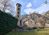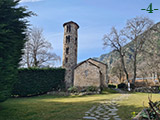 La iglesia de Santa Coloma es un edificio de una sola nave con cubierta de madera a dos aguas y cabecera rectangular. La puerta de acceso se abre en el muro sur y está protegida por medio de un porche. En el extremo oriental de este muro sur se levanta la torre-campanario de planta circular (foto 1).