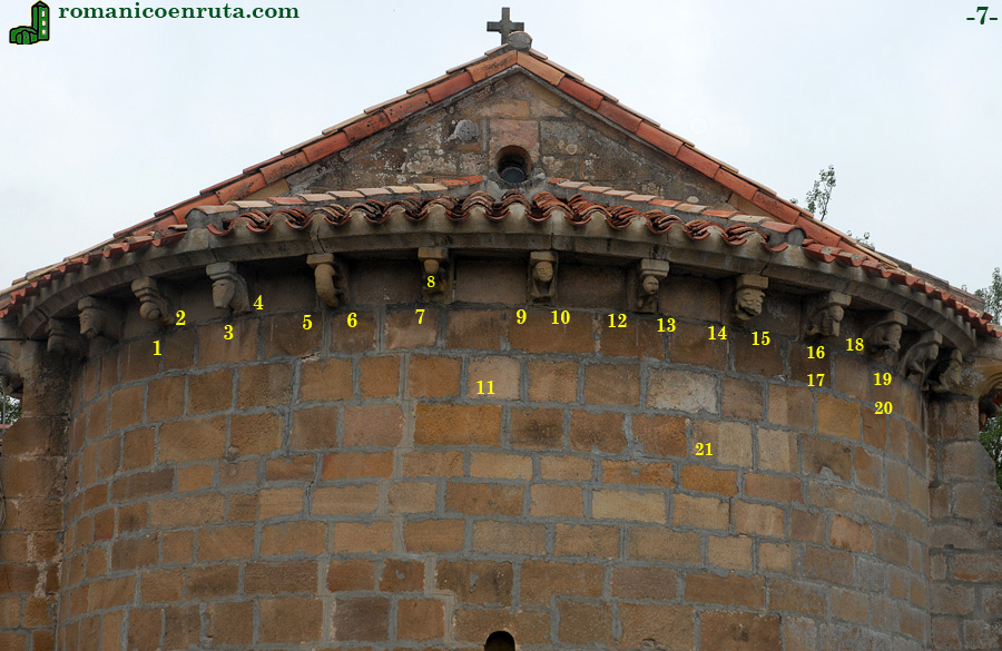; ... otro personaje itifálico que se lleva la mano derecha a la garganta (enlaces 12/13); un monstruo con las fauces abiertas (enlaces 14/15); músico tocando el arpa (enlaces 16/17) y hombre sentado sujetando algo entre sus manos (enlaces 19/20). Los dos últimos del tramo semicircular los detallamos en la página que sigue.