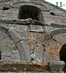 El segundo cuerpo (fotos 11 a 14) alberga dos troneras de arco apuntado donde se encuentran las campanas. La chambrana de los dos arcos (fotos 11/12) es, sin embargo, de medio punto. El tercer cuerpo, de forma triangular, cobija la tronera superior, esta vez de medio punto como la chambrana.