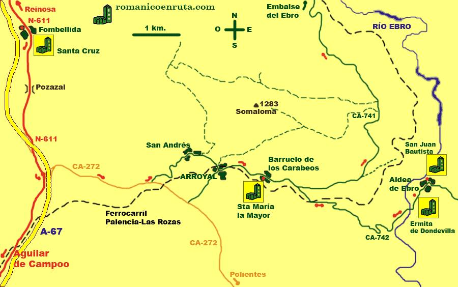 FOMBELLIDA: IGLESIA DE LA SANTA CRUZ. BARRUELO DE LOS CARABEOS: SANTA MARÍA LA MAYOR. ALDEA DE EBRO: ERMITA DE DONDEVILLA. ALDEA DE EBRO: IGLESIA DE  SAN JUAN BAUTISTA.
