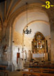 El altar barraco (foto 1) impide que el interior del ábside pueda verse por completo, quedando tras él los arcos centrales de la arquería ciega que orna el cuerpo inferior. Por otro lado, en el tramo presbiterial norte se han perdido los arcos ya que allí se abrió el portal que da acceso a la actual sacristía. La arquería conserva, pues, los siete arcos del tramo semicircular y los dos del presbiterio sur.