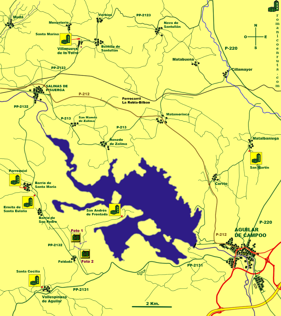 SAN ANDRÉS DE FRONTADA. MATALBANIEGA: IGLESIA DE SAN MARTÍN. VILLANUEVA DE LA TORRE: IGLESIA DE SANTA MARINA. VALLESPINOSO DE AGUILAR: ERMITA DE SANTA CECILIA. BARRIO DE SANTA MARÍA: IGLESIA PARROQUIAL DE LA ASUNCIÓN. BARRIO DE SANTA MARÍA: ERMITA DE SANTA EULALIA.