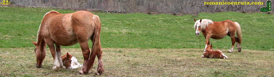 Si no se está por la labor, siempre podremos pasearnos tranquilamente por los alrededores del pueblo. Con un poco de suerte (foto 22), podremos deleitarnos con los juguetones brincos de algún que otro potrillo nacido recientemente o, ya exhaustos, con su plácido descanso bajo la atenta y vigilante mirada de su madre. |