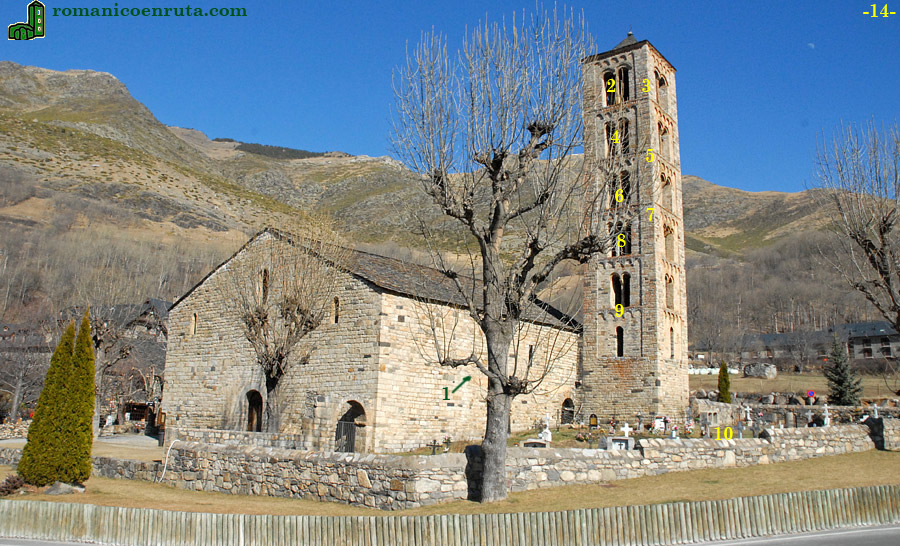 Para obtener las imágenes 10 a 12 os tendréis que acercar al centro de la villa, un poco antes de llegar a la plaza de Santa Maria, donde hay otra pequeña plaza desde la que se obtiene una buena imagen de Sant Climent, y en particular de las caras norte y oeste de la torre (foto 12). En el hastial de poniente (foto 13) se abre la única puerta de acceso al interior del templo (existen otras dos en los muros norte y sur, pero se utilizan en contadas ocasiones) y suele estar abierta durante todo el año. De hecho, es uno de los puntos en donde podréis adquirir la entrada para visitar todas las iglesias del conjunto.