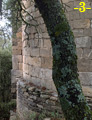 Os decíamos en el texto introductorio que los orígenes de Sant Gervàs se remontan al siglo XI, cuando, en estilo románico lombardo, se erigió una primera ermita que luego fue sustituida por la que hoy sigue en pie. De la primera edificación nos quedan unas cuantas hiladas (fotos 2/3) sobre las que se levantó el ábside semicircular con sillares mucho mejor trabajados. Una ventana de doble derrame ocupa posición axial.
