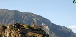 Abandonaremos la cuenca de la Ribera Salada y nos dirigiremos hacia poniente hasta encontrarnos con la C-14, que tomaremos sentido norte hacia Oliana. Atravesaremos el núcleo urbano y un quilómetro más adelante, junto a un pequeño grupo de casas, nos desviaremos por una carretera local que sale a nuestra derecha hacia Les Anoves. Poco después de enfilar las primeras pendientes, un ramal a mano izquierda nos conduce hasta Sant Andreu del Castell (foto 3) que se erige sobre un promontorio rocoso que domina la Horta d'Oliana regada por las aguas del Segre.