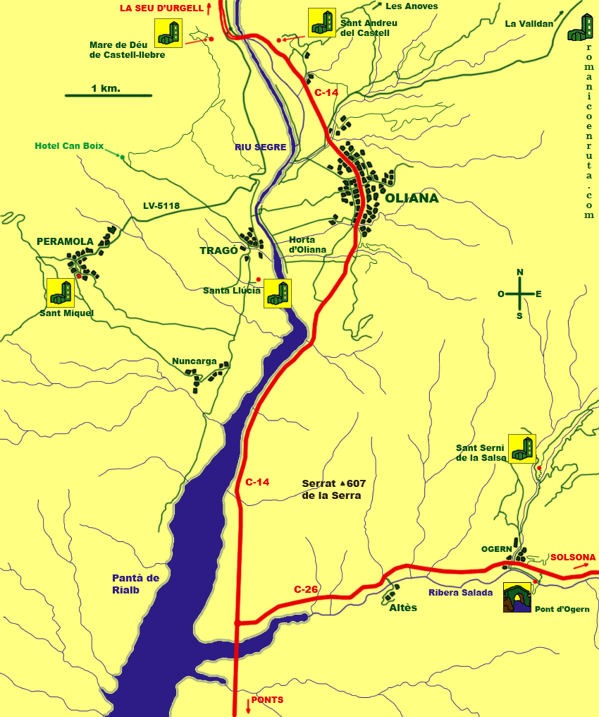 MARE DE DÉU DE CASTELL-LLEBRE. OGERN: SANT SERNI DE LA SALSA. SANTA LLÚCIA DE TRAGÓ. PERAMOLA: ESGLÉSIA DE SANT MIQUEL. OLIANA: SANT ANDREU DEL CASTELL. OGERN: PUENTE MEDIEVAL.